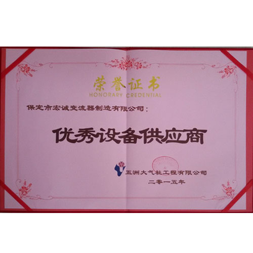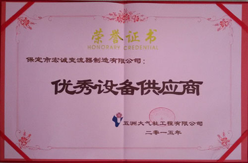 • 2015年榮獲五洲大氣社工程有限公司優(yōu)秀設(shè)備供應(yīng)商單位