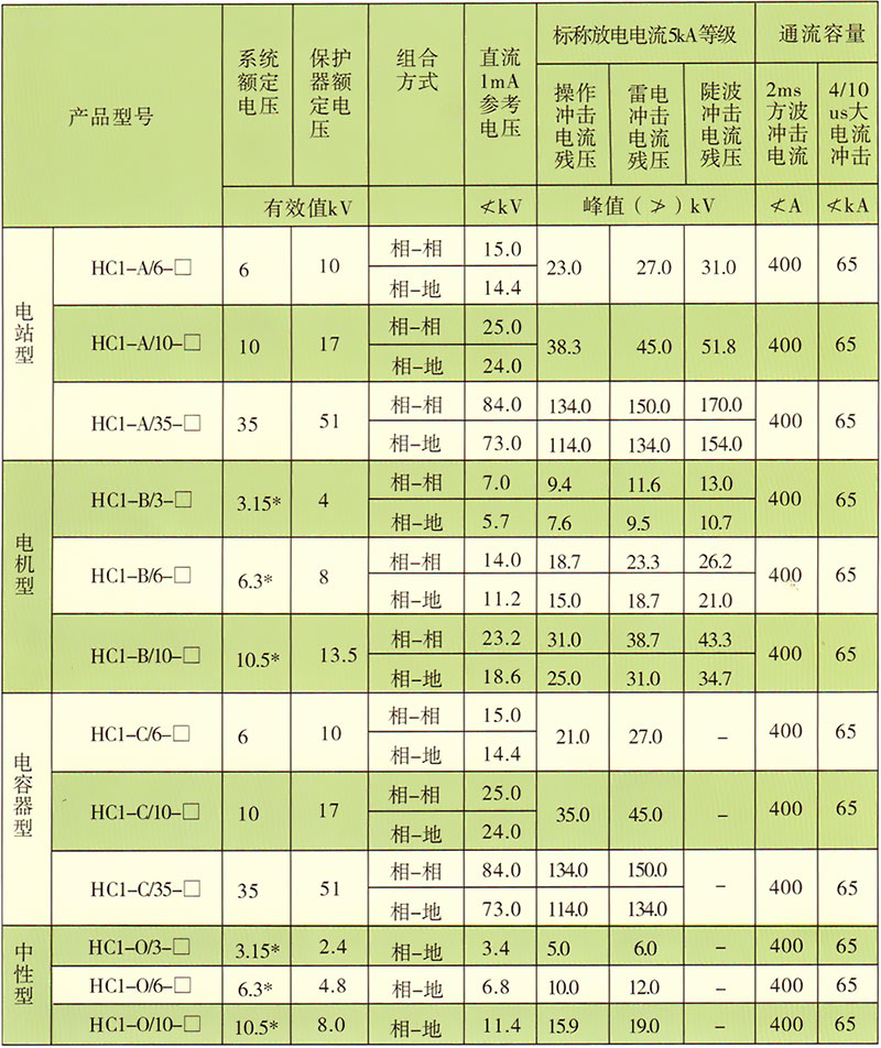 A、電站型:適合各種變壓器、開(kāi)關(guān)、母線的過(guò)電壓保護(hù)