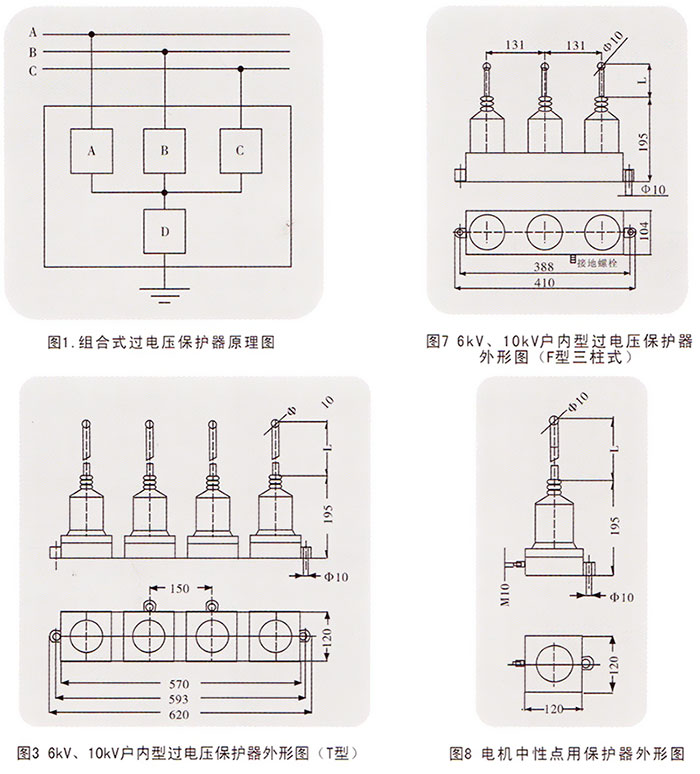 1、無(wú)間隙組合式過(guò)電壓保護(hù)器 2、串聯(lián)間隙組合式過(guò)電壓保護(hù)器 保護(hù)對(duì)象: